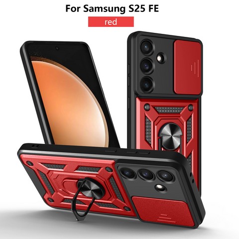 Samsung S25 FE Hybrid Shockproof Magnetic Ring Stand case Red(Premium Package)