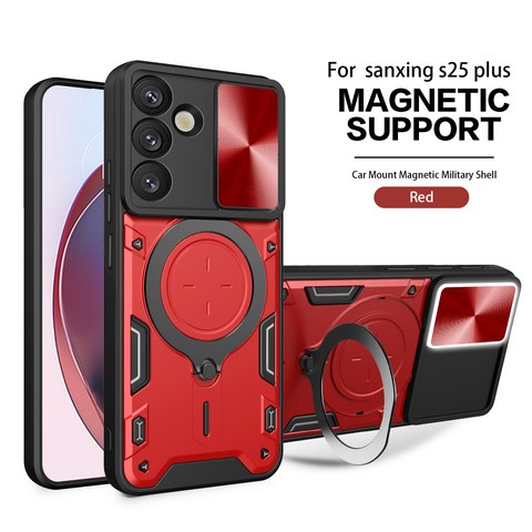 Samsung S25 Plus Twisting Magnetic Ring Stand Case w/Camera cover Red(Premium Package)