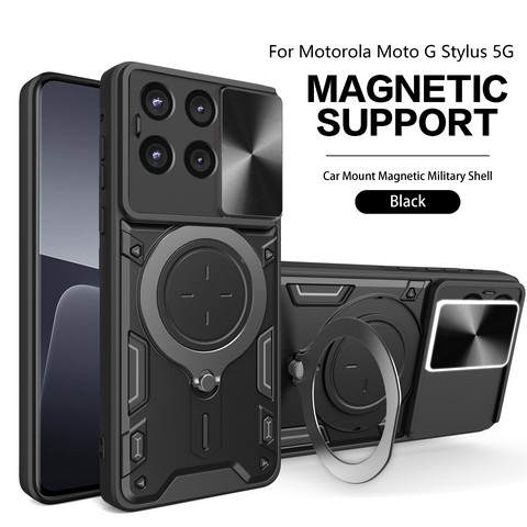 MOTO G Stylus 5G 2025 Twisting Magnetic Ring Stand Case w/Camera cover Black(Premium Package)