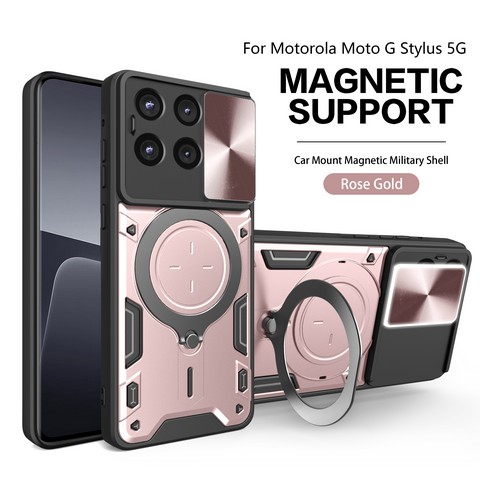 MOTO G Stylus 5G 2025 Heavy Duty Magnet Ring Stand w/ Sliding Camera Cover(Premium Package)