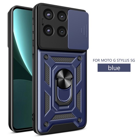 MOTO G Stylus 5G 2025 Twisting Magnetic Ring Stand Case w/Camera cover Blue(Premium Package)