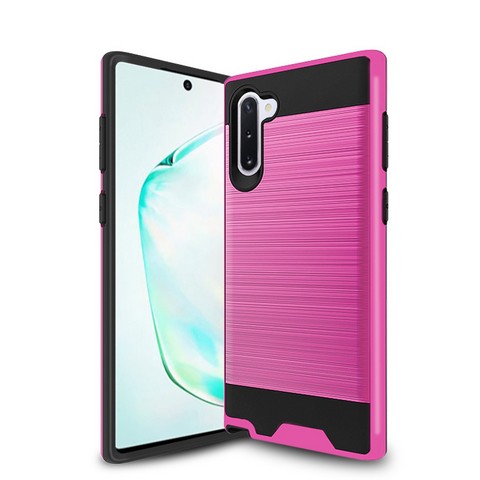 Samsung Galaxy 2019 Note 10 Hybrid Texture Brushed Metal case, Hot Pink