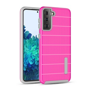 Samsung S21 Plus 6'8 New Texture Brushed Metal case, Hot Pink (Retail Packaged)