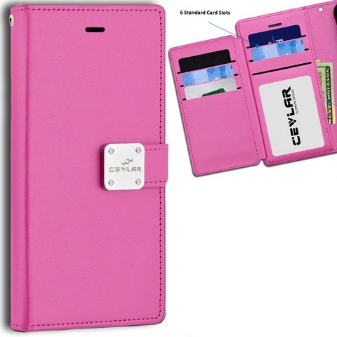 iPhone 12 Pro Max 6.7" Leather Wallet Pouch Hot Pink (Retail Packaged)