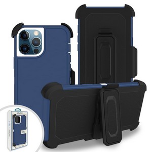 iPhone 12 Pro Max 6.7" Premium Hybrid Triple Combo Holster, Blue (Premium Retail Package)