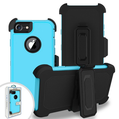 iPhone SE 3 2022/SE 2 2020 iPhone 7/ iPhone 8 4.7 in Premium Hybrid Triple Combo Holster, Sky Blue